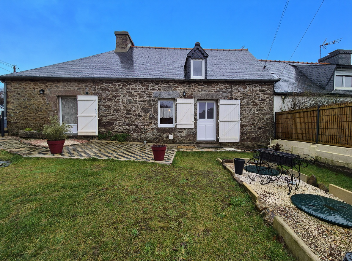 Erwan Guervilly vous propose au centre-ville de Ploubezre, maison en pierres sous ardoises comprenant au RDC: entrée, pièce de vie , cuisine aménagée, arrière-cuisine, wc, Etage 1: 2 chb, SDB Etage 2: possibilité d'aménager une chambre sous comble Attenant à la maison, sur l'arrière de la maison et donnant sur le jardin, grande pièce de 35 m² pouvant servir de rangement ou pouvant être aménagée en pièce à vivre. Jardin de 400 m², garage . Double vitrage, voltes roulants PVC Raccordé au T.A.E. Taxe Foncière: 762 TRAVAUX A PREVOIR