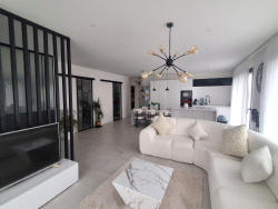 Maison contemporaine de plain-pied (construction 2024) comprenant une entrée avec rangement, une cuisine aménagée et équipée ouverte sur grand salon-séjour lumineux, trois chambres (dont une avec salle d'eau privative, dressing), un bureau, une salle de bains, une buanderie, 2 wc. Grand garage carrelé. Chauffage au sol - pompe à chaleur. Terrain de 430 m2 dans lotissement calme. Contact : Mickaël MOUTON (EI) - 06.15.51.78.29, Agent commercial, RCS 531914000. 'Les informations sur les risques auxquels ce bien est exposé sont disponibles sur le site Géorisques : www.georisques.gouv.fr'.