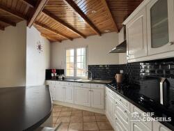 Avec ses 113 m² habitables, cette propriété se compose de 4 pièces spacieuses, dont 3 chambres confortables et une salle de bains moderne. Le séjour de 49 m² est un véritable espace de vie, idéal pour les moments en famille ou entre amis. La cuisine américaine, aménagée et équipée, est un véritable atout pour les amateurs de cuisine.
