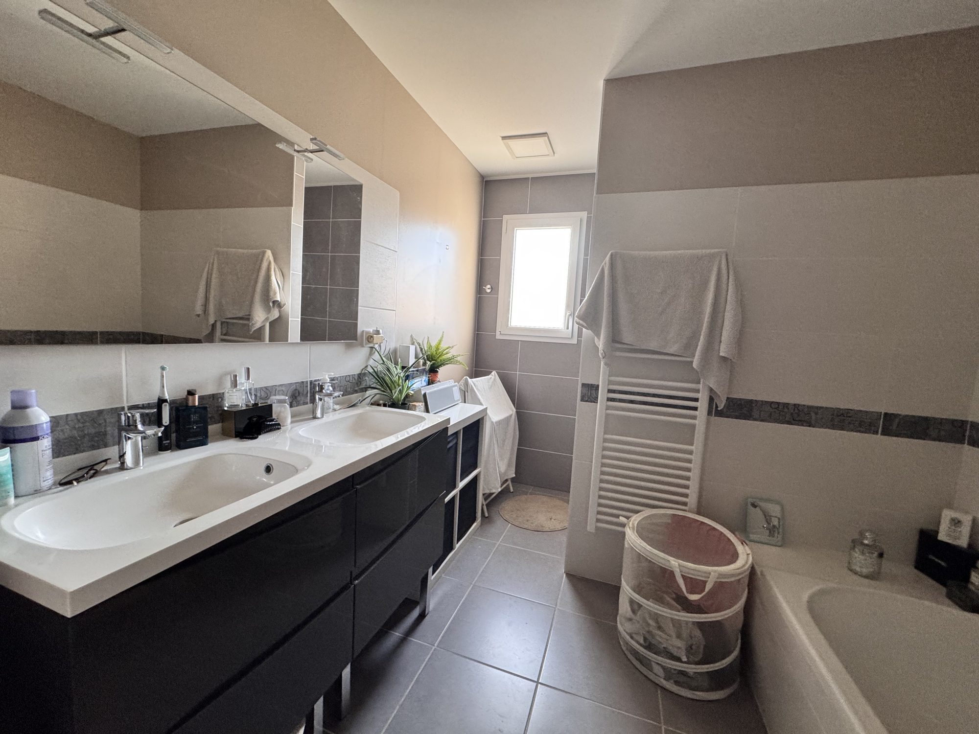 Cette maison se compose d'une pièce de vie de 45m² avec cheminée insert et climatisation donnant sur la cuisine ouverte et son arrière cuisine, 4 chambres dont une suite parentale avec salle de bain (douche et baignoire) WC et dressing, 1 WC séparé, 1 salle d'eau.