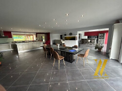 Proche de Reims - En vente à Germigny (51390) : maison 7 pièces, exposée au sud de 270 m² et de 1 550 m² de terrain avec piscine et jardin. Son intérieur comporte une pièce à vivre, quatre chambres, une cuisine aménagée équipée, trois salles d'eau et trois toilettes. Quatre places de parking, une cave et une terrasse (80 m²) complètent le tout. Intérieur en excellent état. Vue dégagée.