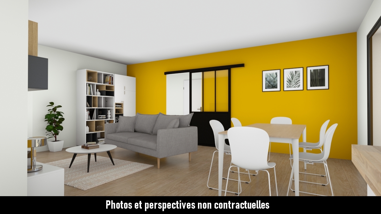 Construisez votre maison 3 chambres en L, avec une pièce de vie lumineuse de 43m² donnant sur une cuisine ouverte et un garage de 20m².