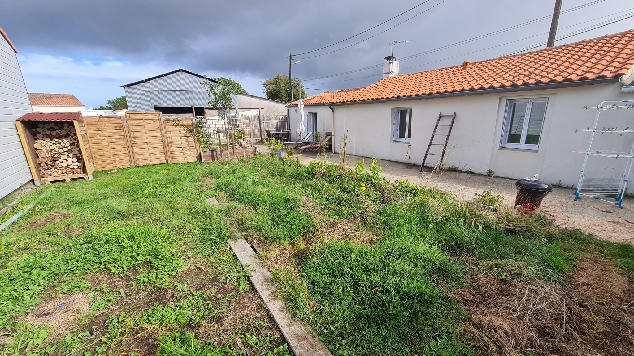 Pièce de vie de 37m² avec cuisine ouverte, 3 chambres et un garage de 20m².