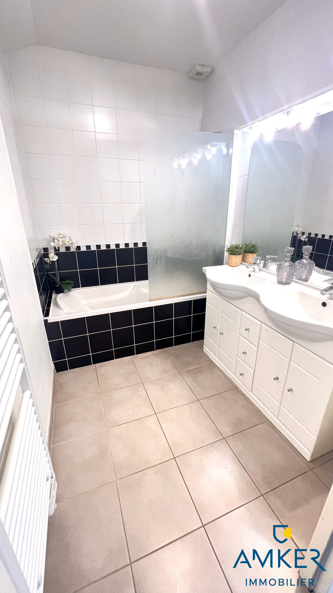 Inclus : grande baie vitrée, volets roulants électriques, chauffage économique avec plancher chauffant, meuble vasque avec mitigeurs Hansgrohe, faïences jusqu'à 30x90 et carrelage jusqu'à 60x60.