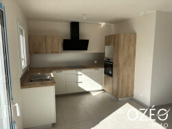 Pavillon avec trois chambres, spacieuse pièce de vie avec cuisine aménagée et équipée, salle de douche, lingerie, garage sur un terrain de 593m2 entièrement clôturé.