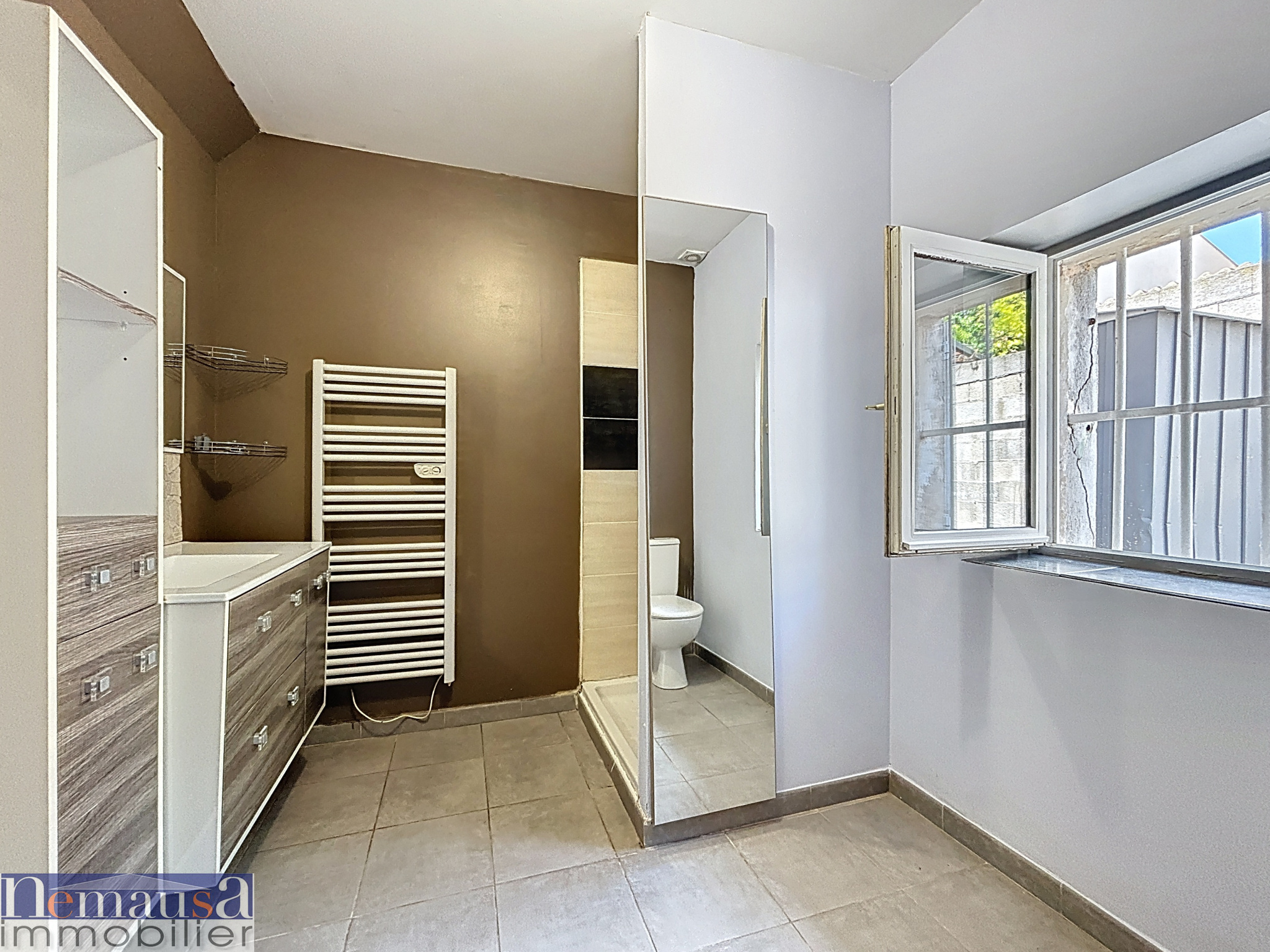 Maison de plain pied de 43 m2 sur une parcelle de 100 m2 idealement située a 5 minutes a pied de l'hopital Caremeau. Vous decouvrirez a l'avant de la maison un espace exterieur avec un abri de jardin permettant de faire du rangement, concernant la maison, une entrée avec dégagement desservant la chambre avec placard, la salle d'eau rénovée, les wc independants, une belle pièce de vie lumineuse avec cuisine ouverte amenagée et équipée de 23 m2 donnant sur un espace exterieur bien aménagé équipé d'un stor banne. La maison a beneficié d'une renovation complète, toiture remaniée, isolation des combles, menuiseries en double vitrage, cuisine récente, salle d'eau et wc renové ... A visiter sans tarder Agence immobilière Nîmes, spécialiste de l'immobilier à Nîmes 4 agences à votre service, Transactions, Locations, Gestion, maisons, appartements et autres biens immobiliers à Nîmes. Les informations sur les risques auxquels ce bien est exposé sont disponibles sur le site Géorisques : www. georisques. gouv. fr.