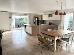 Venez découvrir au calme à Nissan-Lez-Ensérune cette Maison 4 faces de plain pied de 138 m2 habitable, sur un terrain 1000m2. Elle se compose à l'intérieur d'une pièce de vie lumineuse de 60 m2, avec cuisine américaine (de 2023) entièrement aménagée et équipée avec des matériaux de qualité. Au sol : travertin. Vous disposerez également d'un bureau, un wc séparé, un cellier ainsi qu'un garage avec mezzanine de stockage (accessible par un escalier). Coin nuit : une suite parentale (dressing, et espace salle d'eau cette dernière est à réaliser), 3 chambres, une salle de bain spacieuse. Les plus : chauffage au sol, climatisation, double vitrage, isolation, panneaux photovoltaïques (auto conso) . A l'extérieur : terrasse ombragée, espace, barbecue, piscine hors sol 5x3, des travaux d'aménagement restent à prévoir. A l'arrière de la maison : un espace terrain de 300m2 (divisible). Contactez moi pour en savoir plus et organiser votre visite ! Les honoraires sont à la charge du vendeur. Les informations sur les risques auxquels ce bien est exposé sont disponibles sur le site Géorisques : www.georisques.gouv.fr SARL AEM LOC IMMORCS 983 610 940