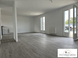 A Seulement 10min des Plages de St GEORGES DE DIDONNE et 8 min du cc de Royan, Charmante maison rénovée de plain-pied de 108m² comprenant : une belle pièce de vie de 48 m² avec cuisine aménagée et équipée, 1 cellier avec chauffe eau thermodynamique, 3 chambres dont une suite parentale (dressing à aménager), une salle d'eau, deux wc, un garage avec porte motorisée. Terrasse bois- Chauffage électrique et possibilité de mettre un poêle le tout sur parcelle de 617m² . N'hésitez pas à contacter Mme Alexandra TRAIN au 06 99 36 39 56