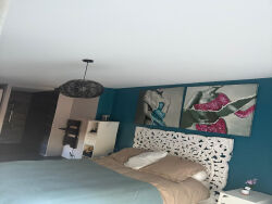 En continuant à travers les doubles portes, nous trouvons 3 autres chambres, la salle de douche familiale et des toilettes séparées. Ces 3 chambres sont équipées de radiateurs électriques, mais il est possible de les raccorder à la pompe à chaleur qui chauffe le reste de la propriété.