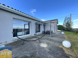 ATIF Immobilier vous propose à la vente et en exclusivité cette maison de 120 m2 construite en 2016. Cette maison plain-pied se compose d'une cuisine ouverte sur un séjour de 50 m2, d'un cellier, de 2 chambres, d'une salle de bain avec WC séparé et d'une suite parentale avec dressing et salle d'eau ouverte sur terrasse. Vous disposez également de la possibilité de créer une 4ème chambre de 24 m2 dans le garage existant, ainsi qu'un garage et une pergola (permis de construire, plan et matériaux). Un terrain de 850 m2 complète ce bien. Maison encore sous garantie (décennale, dommage ouvrage).