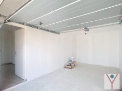Entrée sur grande pièce de vie de plus de 45m² avec coin cuisine non aménagée, buanderie, trois chambres dont une avec placard, salle de bains et WC indépendant. Garage isolé avec porte sectionnelle motorisée, accès direct à la cuisine.