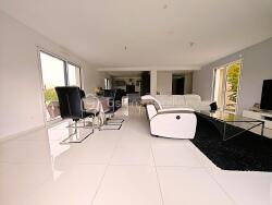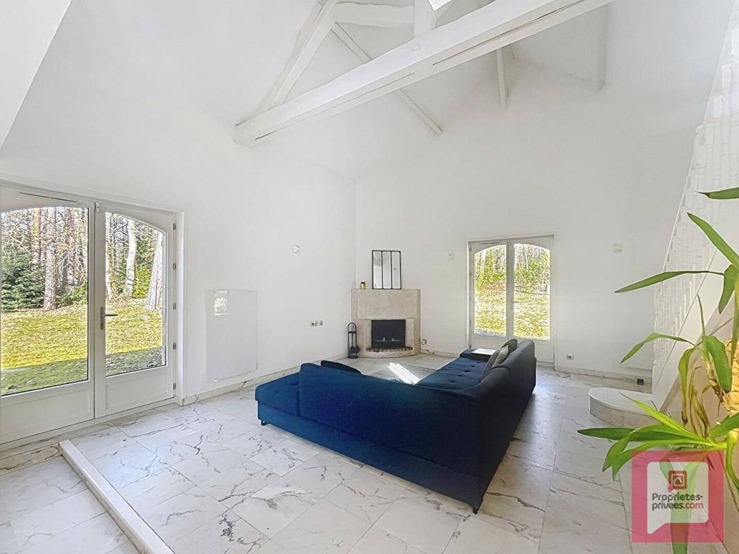 Une Spacieuse entrée desservant un immense séjour de 65m² avec cheminée , lumineux, ouvert sur une terrasse avec jardin sans vis-à-vis ;