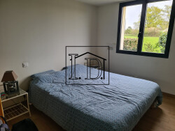 JOLIE MAISON Contemporaine de 114 m² habitables + un HANGAR attenant de 130 m² sur un Terrain de 2 066 m² La MAISON se compose en Rdc d'une PIECE à Vivre de 50 m² (SALON/SEJOUR/CUISINE) donnant sur une Terrasse avec une Piscine, une CHAMBRE, une Salle d'Eau, un Wc séparé, une Buanderie A l'étage, une Mezzanine et une CHAMBRE avec un WC/Lavabo (possibilité d'installer une douche) Un HANGAR attenant de 130 m², (isolé toIture et murs) pouvant accueillir du stockage ou faire un agrandissement de la maison.