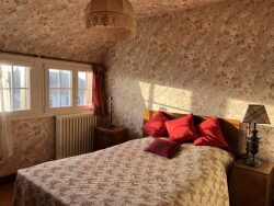 Cette dernière dispose au rez-de-chaussée d'une entrée , une cuisine aménagée et équipée, un séjour ouvrant sur une terrasse et jardin, une chambre, une salle d'eau, des WC séparés, et un garage avec cellier. A l'étage, un couloir dessert 2 chambres, un cabinet de toilettes et 2 greniers aux extrémités pouvant êtres aménagés.