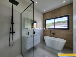 Votre agence BIENS IMMOBILIERS vous propose à la vente, cette magnifique maison neuve de 2023 d'une superficie habitable de 220m2 sur un terrain avec vue magnfique de 1800m2. Maison composée d'une très belle pièce de vie, cuisine ouverte avec îlot central. 5 chambres, dont 2 suites parentales. Dressing, 3 salles de bains avec douche et baignoire. Cellier / buanderie. Double garage. Pool house avec salle d'eau, piscine avec cascades. TRES BELLE MAISON DE PRESTIGE. « Les informations sur les risques auxquels ce bien est exposé sont disponibles sur le site Géorisques : www.georisques.gouv.fr ». Contactez-nous au 05 53 23 46 62 ou venez nous retrouver au 68 bis rue clairat à Bergerac. Découvrez tous nos biens sur notre SITE INTERNET : http://biensimmobiliersbergerac.com ou suivez sur Facebook : https://www.facebook.com/BiensImmobiliersBergerac.fr/