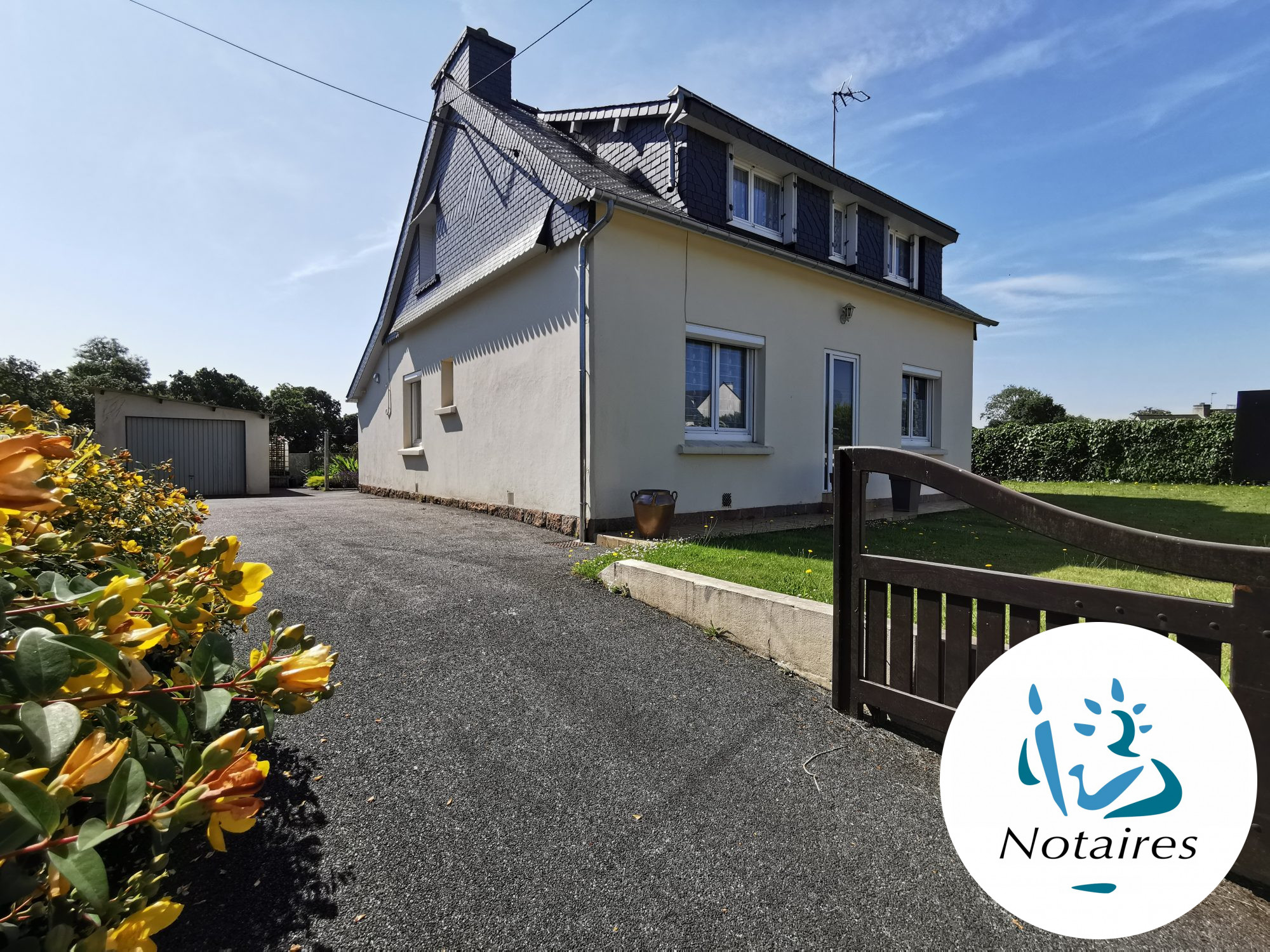 LA PRENESSAYE -22210. Au calme, au fond d'une impasse, agréable maison de 104 m² habitables proposant une vie de plain pied avec terrasse orientée plein Sud. Au RDC, l'entrée distribue à droite sur la cuisine aménagée et équipée indépendante avec coin repas, à gauche vaste salon-séjour avec cheminée à foyer ouvert (conformité à prévoir) et accès direct sur la terrasse. Le couloir dessert deux chambres et la salle de bains. A l'étage, deux chambres dont une de plus de 20 m², une salle d'eau, dégagement, grenier pour stockage. Sous-sol complet divisé en garage pour 2 voitures, atelier, buanderie, pièce de rangement. Beau terrain de 903 m² clôturé sans vis à vis. Très bon diagnostic énergétique grâce notamment aux récents travaux réalisés: Ouvertures PVC double vitrage avec volets électriques, pompe à chaleur, isolation renforcée... De très bonnes prestations d'ensemble pour cette maison prête à vous recevoir sans travaux à engager.