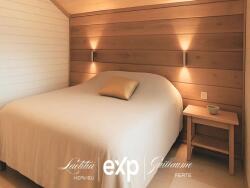 RDC : Entrée, salon, cuisine équipée ouverte sur séjour double avec cheminée/insert, chambre, salle d'eau