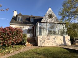 Jolie maison traditionnelle proche commerces avec Vue Mer à Rénover intérieurement. Maison traditionnelle construite sur sous sol complet, couverte en ardoise et comprenant : - Au sous-sol : Garage double, cave, pièce atelier et chaufferie le tout pour une surface de 60 m2. - Au rez-de-chaussée : salon / séjour de 30 m2 avec cheminée, accès véranda, cuisine aménagée, dégagement avec placards, chambre avec salle d'eau privative, WC indépendant. - A l'étage : une belle chambre avec bureau sur mer, dégagement, salle de bains avec WC, chambre avec vue mer et grenier. Beau jardin paysagé et clos avec place de parking et cour bitumée. Accès facile au sous-sol pour voiture. Terrain de 900 m2.