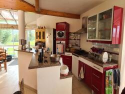 la maison est chauffée par un poêle à bois, une pompe à chaleur air/air et est équipé de panneaux photovoltaïques et d'un chauffe eau solaire.