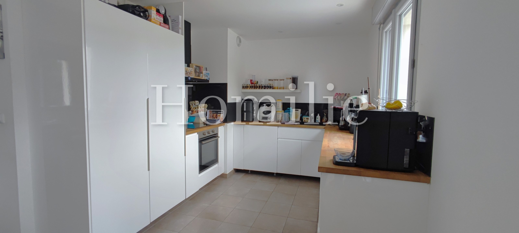 Avec ses 89 m² au sol, la maison se compose d'une pièce principale lumineuse avec cuisine ouverte et aménagée, d'une buanderie et d'un WC. À l'étage, un dégagement dessert trois chambres, une salle d'eau et un WC, offrant un espace confortable pour une famille.