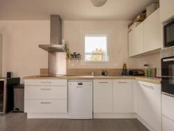 Cuisine aménagée et équipée ouverte, accès terrasse et jardin clos.