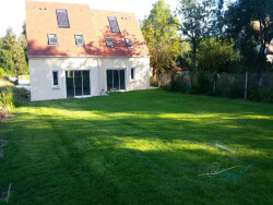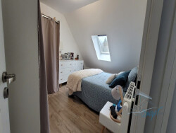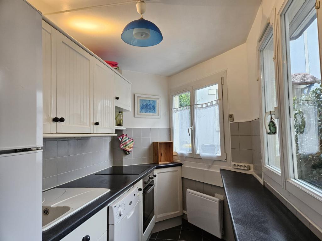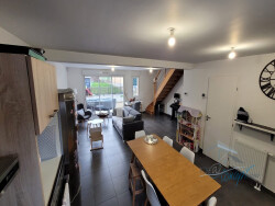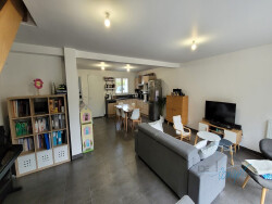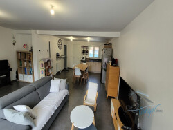 Dispo le 7 Janvier 2026 Pavillon de type F5 comprenant au rez de chaussée : un salon-se?jour sur cuisine ouverte ame?nage?e et e?quipe?e, un WC, cellier A l'e?tage : un palier desservant 3 chambres, une salle de bains avec wc. Une terrasse d'environ de 30 m2, un jardin paysage? et engazonne? d'environ 292 m2 Chauffage gaz de ville. Raccordement au tout a? l'e?gout. 2 places de parking privative
