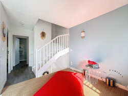 1er étage : une mezzanine offrant une vue sur le séjour idéal pour en faire un bureau/salle de jeux, une chambre de 12.69 m² et une salle d'eau.