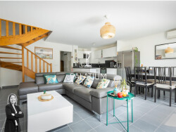 Dès l'entrée, vous serez séduits par une pièce de vie lumineuse, exposée plein sud, offrant de beaux volumes et une agréable ouverture sur l'extérieur grâce à de larges portes-fenêtres. La cuisine ouverte vient parfaire cet espace convivial, idéal pour partager des moments en famille ou entre amis.