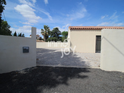 Découvrez le confort absolu et saisissez l'opportunité d'acquérir cette magnifique maison individuelle (4 faces) de plain-pied, Idéalement conçue sur 107 m2 habitables et édifiée sur une parcelle entièrement clôturée de 586 m2, elle garantit un cadre de vie sans aucun vis-à-vis. Côté jour : L'entrée séparée mène à une spectaculaire pièce de vie de plus de 50 m2 orientée Sud/Sud-Ouest baignée de lumière, comprenant un salon-séjour et une cuisine moderne entièrement équipée. Côté nuit : Vous bénéficierez d'un aménagement optimal avec un couloir distribuant deux chambres confortables, une salle de bain et WC séparé, ainsi qu'une suite parentale complète avec sa propre salle d'eau et WC. Les prestations sont haut de gamme : Climatisation réversible gainable (intégration parfaite), menuiseries double vitrage en aluminium, volets roulants électriques centralisés, chauffe-eau thermodynamique. Extérieurs : Le terrain est piscinable et parfaitement exploitable. La maison dispose d'un garage carrelé de 16 m2, de places de parking privatives et d'un vide sanitaire. Un bien rare à découvrir rapidement ! INFORMATIONS CLÉS :