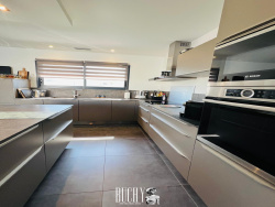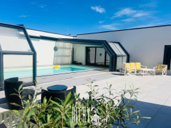 Dans un quartier calme, à proximité des commerces, découvrez une maison de plain-pied T5 de 168 m2 édifiée sur un terrain clos de 1474 m2. Contemporaine et fonctionnelle, elle dispose d'un vaste séjour de 52 m2 et d'une grande cuisine équipée se prolongeant sur une terrasse avec piscine chauffée. L'espace nuit est composé de 4 chambres, une salle de bains avec douche et baignoire, un dressing et 2 wc. Une buanderie et un vaste garage de 48 m2 vous apporterons un confort certain. Lumineuse, spacieuse et fonctionnelle, cette maison convient parfaitement à une résidence principale ! DPE ANCIENNE VERSION. Montant estimé des dépenses annuelles d'energie pour un usage standard : 557,17 EUR/an. Date de référence des prix de l'énergie utilisée pour établir cette estimation: 15 août 2015. Les informations sur les risques auxquels ce bien est exposé sont disponibles sur le site Géorisques : www.georisques.gouv.fr