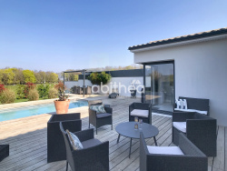 Sur la commune de VOEUIL ET GIGET, je vous propose cette très belle maison récente (2020) de plain pied de 157 m2. Dès l'entrée vous apprécierez la spacieuse pièce de vie de 50m2 avec la vue sur le jardin, une cuisine équipée avec de nombreux rangement et son îlot central. Elle dispose d'un cellier ainsi que d'une buanderie. L'espace nuit distribue 4 chambres lumineuses dont une parentale avec son dressing salle d'eau privative et wc, une salle de bains avec douche à l'italien et un wc séparé. La maison bénéficie de nombreux équipement haut de gamme ( électro ménager, baie à galandage, climatisation, domotic, carport). Une terrasse d'environ 100 m2 accueille une piscine ainsi q'une pergola pour profiter des belles soirées d'été avec vue sur le jardin paysagé cloturé et sans vis à vis. Un garage complète le bien et dispose de 4 places de stationnement supplémentaire. Ce bien vous intéresse contactez Cécile PRUDHOMME au 06 21 02 48 24 agent commercial immatriculé au RSAC d'Angouleme no520 278 334 RC pro Allianz no 60235859 Classe Energie A indice 46 Classe Climat A indice 1 Les informations sur les risques auxquels ce bien est exposé sont disponibles sur le site www.georisques.gouv.fr.
