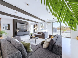 Au rez-de-chaussée, vous découvrirez une vaste pièce de vie lumineuse d'environ 57 m² avec cuisine américaine aménagée et équipée, ouverte sur l'extérieur. Ce niveau propose également une suite parentale, une chambre, un bureau, une salle d'eau, un cellier ainsi qu'un WC indépendant.