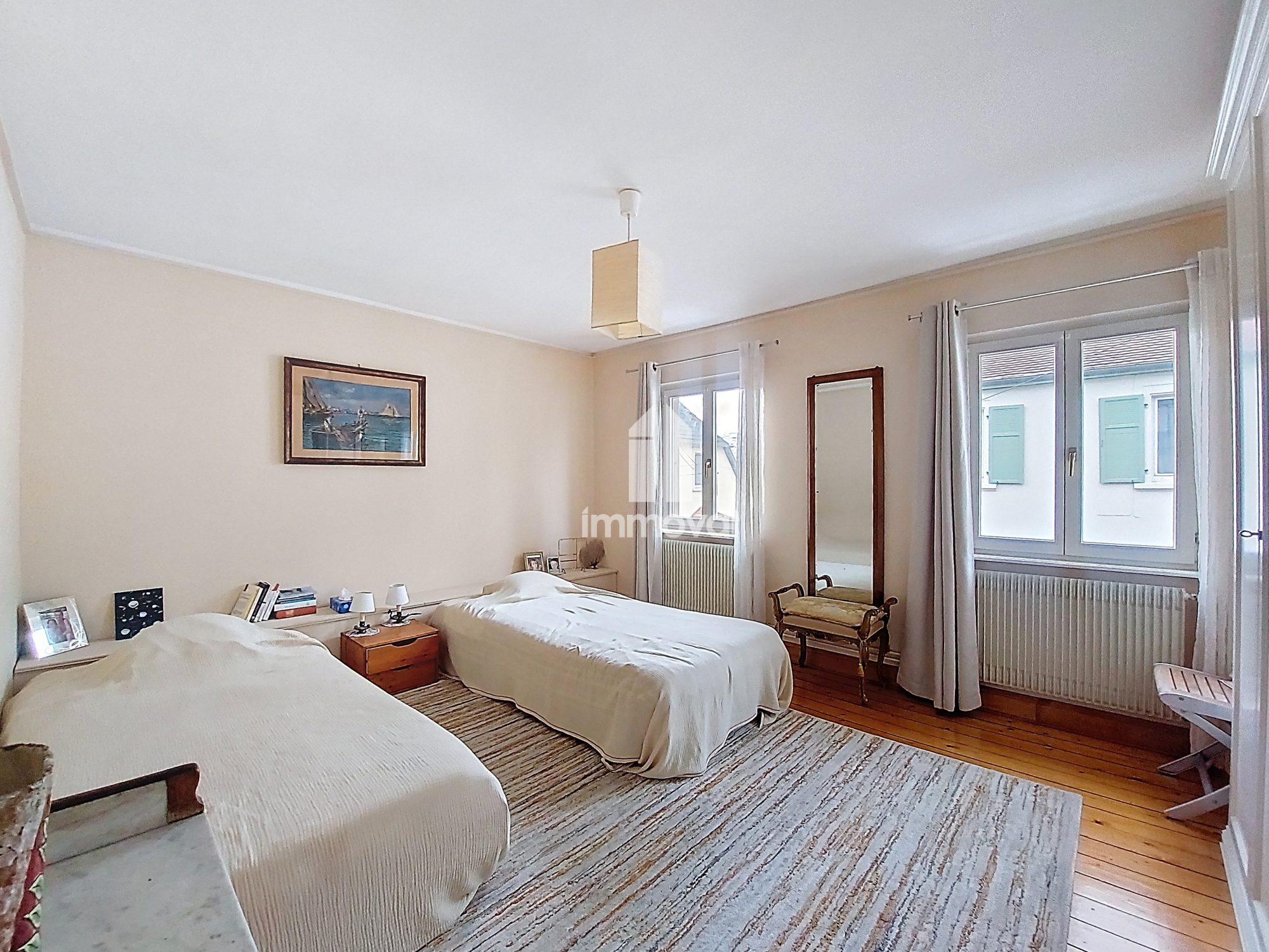 OBERNAI : rare à la location, venez visiter cette belle maison entièrement rénovée de 118 m2 au sol et 93 m2 habitable. Au rez de chaussée elle se compose de trois chambres , d'une salle de bain avec une baignoire, une douche à l'italienne et un WC et un espace buanderie. A l'étage, vous pourrez découvrir une cuisine aménagée et équipée ouverte sur le salon séjour et donnant accès à une belle terrasse de 35 m2 exposée sud ouest, et un WC avec un lave main. Un espace mezzanine sera idéal pour du rangement. La maison donne accès à un jardin verdoyant et vous pourrez stationner deux véhicules devant l'entrée principale. Le bien est disponible au 1er mars et il se situe dans le quartier du parcours de santé, idéal pour votre bien être.