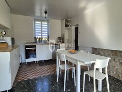Elle se compose au rdc: d'un grand séjour/salon avec une cheminée équipée d'un insert, d'une grande cuisine, d'une buanderie/lingerie (à finir), une salle d'eau et un wc.