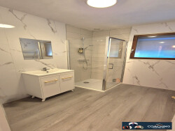 Cette propriété comprend également un stationnement intérieur pour un véhicule et cinq places de stationnement extérieures. Les portes à double vitrage garantissent une isolation optimale, et le chauffage individuel assure un confort thermique toute l'année.