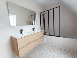 Structure : dalle béton sur chaque niveau / murs parpaings + briques creuses et plâtres. Système de chauffage : chaudière gaz à condensation de 2016 marque Vaillant + radiateurs en acier. Isolation combles : ouate minérale par insufflation + VMI. Assainissement : tout à l'égout conforme. Huisserie : fenêtres PVC double vitrage. Volets battants manuels PVC et volets bois. Coffret électrique et appareillages modernes. Revêtement de sol : parquet flottant rdc / carrelage r+1 / parquet flottant étage