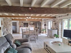 Au rez-de-chaussée, vous trouverez un salon séjour avec poêle à bois, une cuisine aménagée et équipée, une buanderie, et une chambre avec salle d'eau, wc.