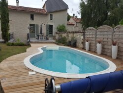 Coup de cur pour cette superbe propriété de 4 chambres, située dans un hameau tranquille mais à seulement 4 km de la charmante ville de Matha avec tous commerces. Cette maison serait idéale pour une activité de chambres d'hôtes. La plus ancienne maison du village, elle date du 16ème siècle et est imprégnée d'histoire. Les propriétaires l'ont rénovée avec soin, en conservant de nombreux éléments d'origine les poutres, les pierres apparentes et la tour était refaite. Une partie des murs est à colombages, ce qui est extrêmement rare dans un tel état. La maison bénefice d'un excellent bilan enérgetique ! Décorée avec gout et immédiatement habitable cette résidence unique offre un mélange harmonieux de charme historique et de confort moderne. Une activité de chambre d'hôtes est tout à fait envisageable puisqu'il y a 2 escaliers et que la maison peut être séparée en 2 parties indépendantes si nécessaire. La piscine est un vrai plus, et ausssi le ruisseau qui passe dans le jardin Combinez tout cela avec un joli jardin bien entretenu, vous avez tout ce qu'il vous faut. Au rez-de-chaussée, vous trouverez un hall d'entrée, un très grand et lumineux salon, une grande cuisine/salle à manger avec cheminée et îlot central. Une buanderie se trouve juste derrière la cuisine. Un bureau et des toilettes séparées complètent le rez-de-chaussée. A l'étage, il y a 3 chambres, toutes avec salle de douche attenantes, d'un côté de la maison. De l'autre côté, il y a une grande chambre principale avec une vaste salle de bains attenante avec baignoire à pieds, douche et WC Chauffage par pompe à chaleur au sol en RDC Les plus ++ un garage avec un arrive d'eau et éléctricité. Le tout à l'égout est prévu pour 2026. Qui pourrait demander plus ? Les informations sur les risques auxquels ce bien est exposé sont disponibles sur le site Géorisques : www.georisques.gouv.fr »