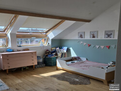 L'étage accueille trois chambres spacieuses et confortables, une salle d'eau contemporaine avec douche à l'italienne, ainsi qu'une buanderie et un local technique situés au rez-de-chaussée pour plus de praticité. Un garage fermé et une place de stationnement privative complètent l'ensemble.