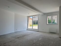 Elle dispose au rez-de-chaussée d'une cuisine, un salon-séjour lumineux d'environ 30m2, une grande chambre ou bureau, WC.