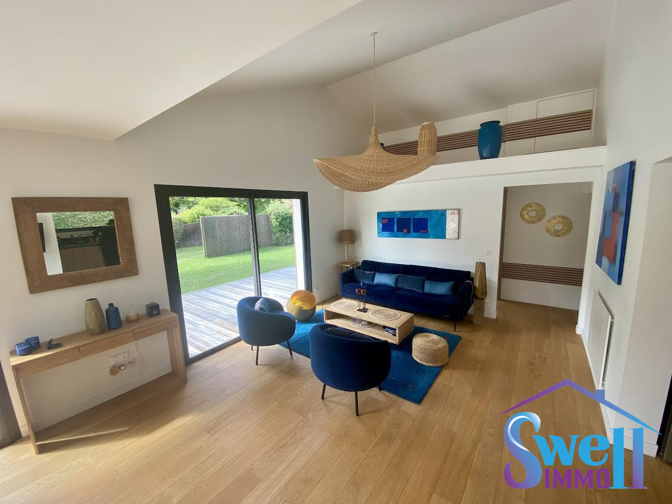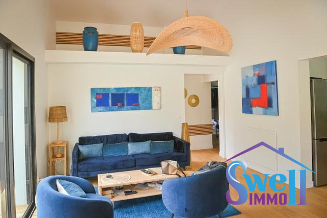 Située dans un lotissement calme à proximité des commerces et des transports, vous serez immédiatement séduit par son majestueux salon baigné de luminaire de 55 m2 avec cuisine ouverte exposé plein Sud, dans un style déco bois naturel.