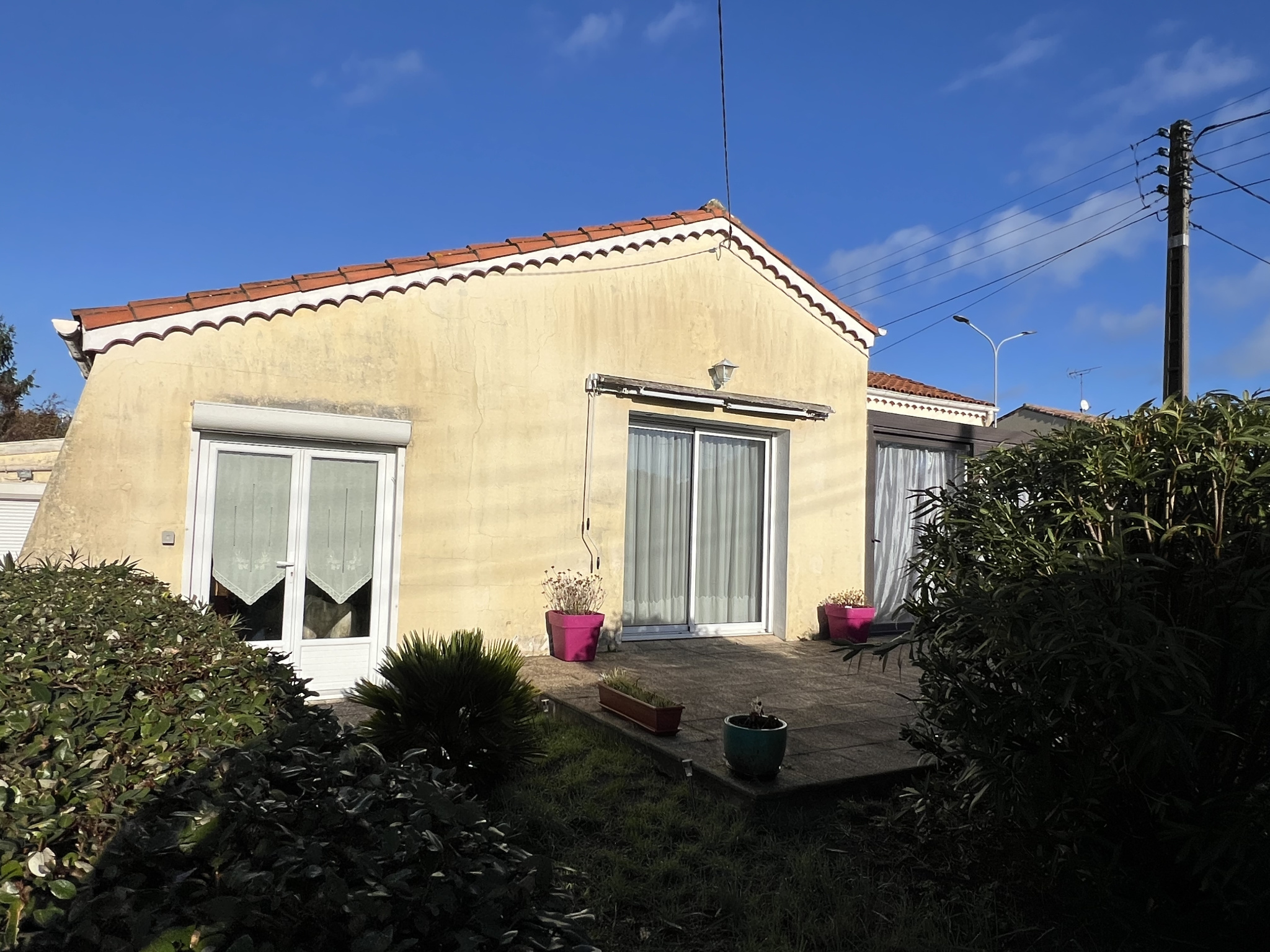 Charente-Maritime (17) à proximité de la plage du Chay dans la station balnéaire de Royan, Stéphane vous présente cette maison rénovée de 4 pièces de plain-pied de 87 m² environ. Elle se compose d'un séjour ouvert sur une terrasse paysagée, d'une cuisine ouverte; de 3 chambres dont une avec salle de bain, et une autre avec douche à l'italienne privative, un dressing et un WC séparé. Bien équipée d'huisseries PVC et stores électriques, 5 postes de climatisations réversibles par pompe à chaleur et chauffe-eau thermodynamique. Une place de parking avec portail, et un abri de jardin complètent ce bien. L'avis du professionnel : Charmante maison récemment rénovée, très bien située avec les transports en communs à proximité immédiate, et la plage du Chay et supérette à 350?mètres. Cette maison peut convenir à une résidence principale comme secondaire. Prix honoraires à la charge du vendeur inclus. Contactez Stéphane THIOLLET E.I. au O6.24.53.22.47 ou à s.thiollet@immoangels.com, annonce présentée par un agent commercial en immobilier inscrit au R.S.A.C. de Saintes (17) N° 843.964.677. Barème consultable : https://www.immoangels.com/i/redac/honoraires. Risques auxquels ce bien est exposé disponibles sur : www.georisques.gouv.fr