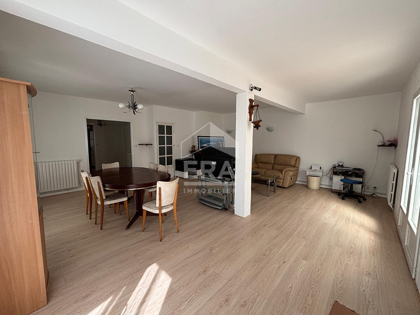 Cette maison rénovée vous accueillera dans une ENTRÉE avec rangements desservant la pièce de vie LUMINEUSE d'environ 45 m² avec sa CUISINE EQUIPEE et ouverte sur un balcon.