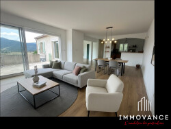Le séjour ouvert sur la terrasse de 30m² donnant accès au jardin par un escalier .