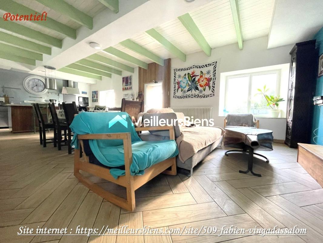 A VENDRE, PLERIN, 5mn du bourg, 5mn St Brieuc centre, maison de ville en pierre avec extension (158m2 habitables), rénovée en 2023 et 2024, sur 3360m2 de terrain, comprenant en rez de jardin: grand salon/séjour avec poêle et cuisine us aménagée ouvrant sur terrasse et jardin au S/O, dégagement avec placard, chambre, salle d'eau; wc; au 1er étage inférieur: palier, 2 chambres dont une avec placard, salle de bains avec placard; en rez de rue: 2 entrées, salon avec cheminée, cuisine aménagée avec placard, wc (possibilité appartement indépendant); stationnement pour 3 voitures sur cour, 2 Abris jardin et un cellier, ATYPIQUE, BEAUX VOLUMES, ENSOLEILLÉE, TRÉS BON ÉTAT. (4.50 % honoraires TTC à la charge de l'acquéreur.)