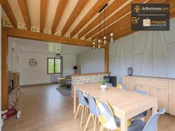 Dès l'entrée, vous découvrirez une spacieuse pièce de vie de 64 m², baignée de lumière, avec cuisine ouverte neuve, aménagée et équipée, et un insert bois central.
