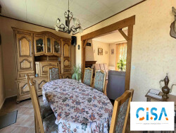 Maison chaleureuse et bien agencée, avec un séjour lumineux agrémenté d'une cheminée, idéal pour des moments conviviaux. La cuisine aménagée et équipée offre un espace fonctionnel au quotidien. Les trois chambres, réparties sur deux niveaux, permettent d'accueillir confortablement une famille. Le sous-sol total apporte un réel atout pour le rangement ou les projets annexes.