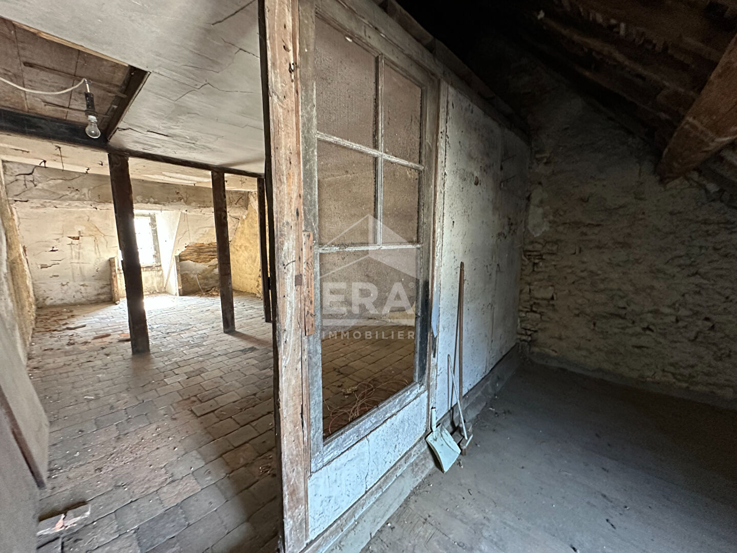Cette maison de 74m2 se compose d'1 entrée/salon/salle à manger, 1 cuisine aménagée/équipée, 1 salle de douche, 1wc, 2 chambres et 1 grenier pouvant être aménagé. Elle possède également 1 puits et des dépendances : 1 grange desservant 1 grande pièce/chaufferie, 1 espace faisant office de garage, 1 étable avec des greniers.