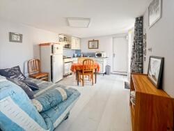 La maison principale s'organise au rez-de-chaussée autour d'une pièce de vie avec cuisine aménagée et équipée, ouverte sur une belle terrasse par une grande baie en galandage. On y trouve également un cellier-buanderie et des toilettes indépendants.