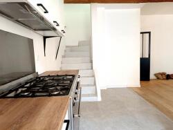 Au 1er étage vous serez séduit par l'espace de vie composé d'un séjour avec poêle a bois et d'une cuisine aménagée et équipée d'un super piano de cuisson !